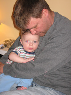 David has a big head like his mom and dad, so all of his hats are too small. We were leaving very early in the morning and so we put one of Bryan's hats on him to keep him warm.